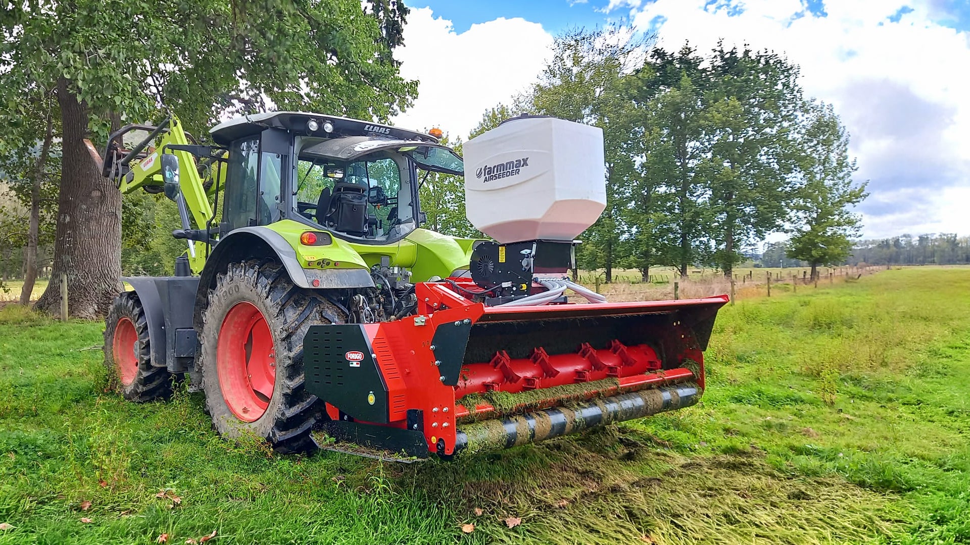 New heavy duty Forigo Mulcher with FarmMax AirSeeder in action.